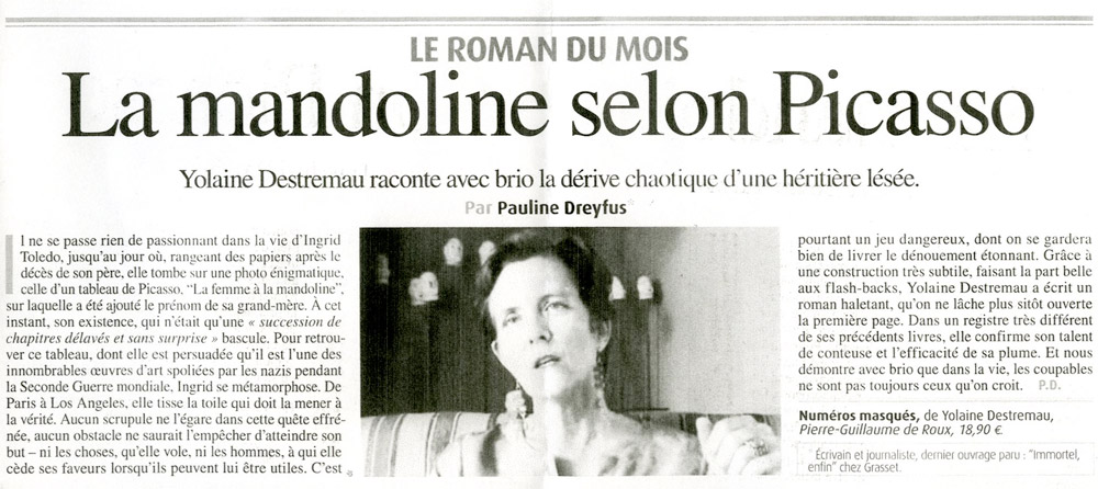 La mandoline selon Picasso. Yolaine Destremau raconte avec brio la dérive chaotique d’une héritière lesée. […]